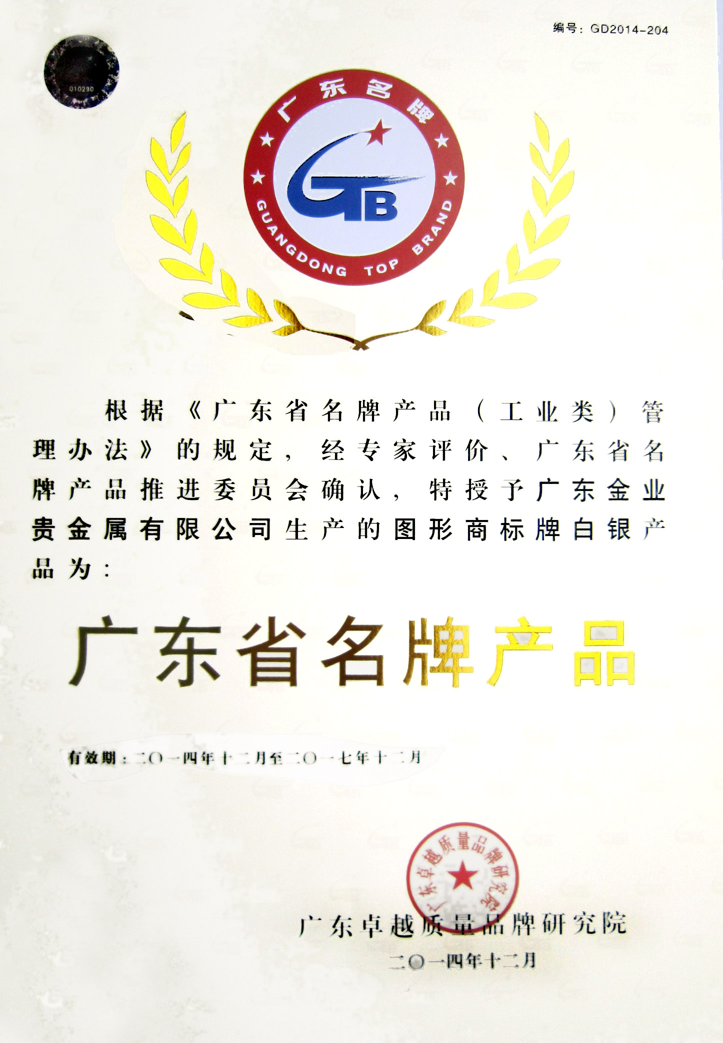 我司白銀產(chǎn)品獲“廣東省名牌產(chǎn)品稱號”受到云浮市政府表揚